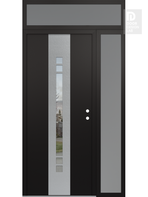 Modern Steel Front Door DIAMOND A4 52" X 96" BLACK/BLACK CLEAR GLASS PANEL STAINLESS STEEL RHI WITH SIDELITE AND TRANSOM FROSTED GLASS