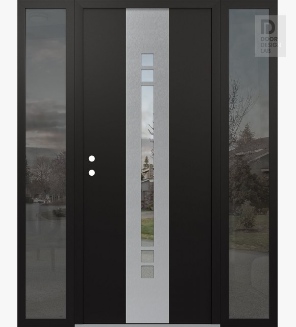 Modern Steel Front Door DIAMOND A4 60" X 80" BLACK/BLACK CLEAR GLASS PANEL STAINLESS STEEL LHI WITH 2 SIDELITES MIRRORED GLASS