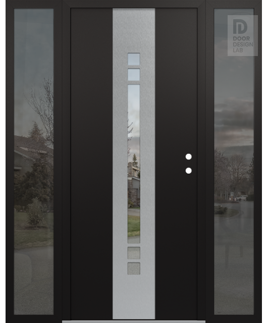 Modern Steel Front Door DIAMOND A4 60" X 80" BLACK/BLACK CLEAR GLASS PANEL STAINLESS STEEL RHI WITH 2 SIDELITES MIRRORED GLASS