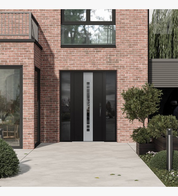The double-chamber glazing combined with polystyrene insulation reduces heat loss by 40-50% compared to conventional exterior doors: