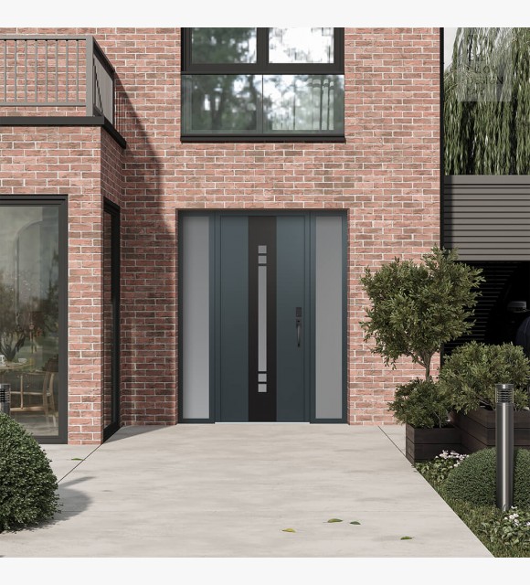 Modern Steel Front Door DIAMOND A4 64" X 80" ANTHRACITE/ANTHRACITE FROSTED GLASS PANEL BLACK LHI WITH 2 SIDELITES FROSTED GLASS