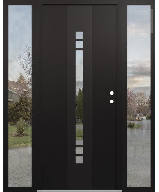 Modern Steel Front Door DIAMOND A4 64" X 80" BLACK/BLACK CLEAR GLASS PANEL BLACK RHI WITH 2 SIDELITES CLEAR GLASS