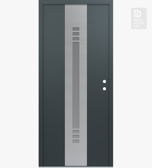 Modern Steel Front Door DIAMOND A5 36" X 80" ANTHRACITE/ANTHRACITE FROSTED GLASS PANEL STAINLESS STEEL LHI