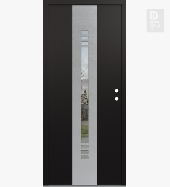 Modern Steel Front Door DIAMOND A5 36" X 80" BLACK/BLACK CLEAR GLASS PANEL STAINLESS STEEL RHI