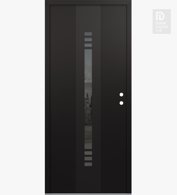 Modern Steel Front Door DIAMOND A5 36" X 80" BLACK/BLACK MIRRORED GLASS PANEL BLACK RHI