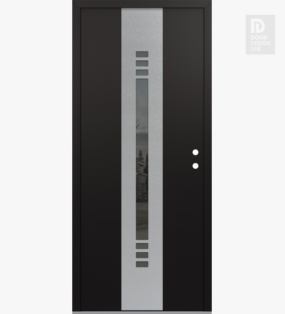 Modern Steel Front Door DIAMOND A5 36" X 80" BLACK/BLACK MIRRORED GLASS PANEL STAINLESS STEEL RHI