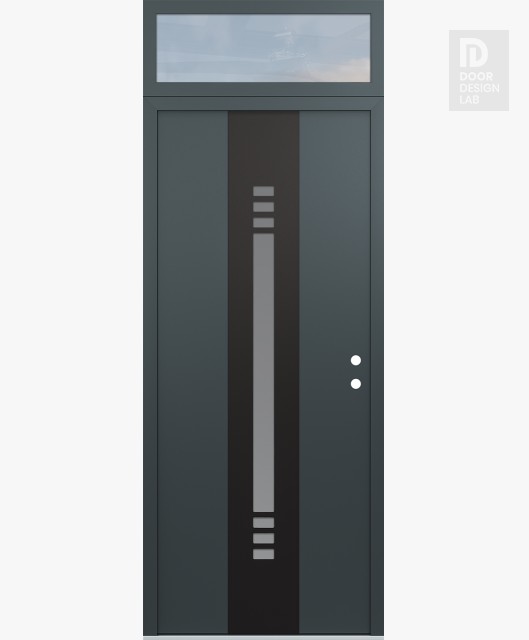 Modern Steel Front Door DIAMOND A5 36" X 96" ANTHRACITE/ANTHRACITE FROSTED GLASS PANEL BLACK RHI WITH TRANSOM CLEAR GLASS