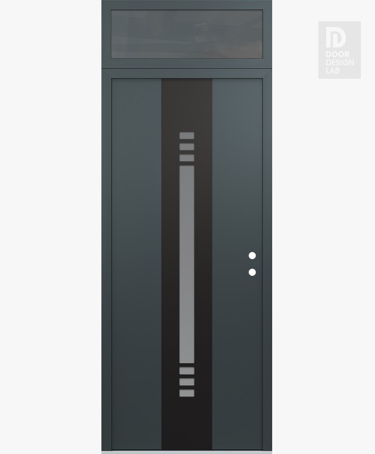 Modern Steel Front Door DIAMOND A5 36" X 96" ANTHRACITE/ANTHRACITE FROSTED GLASS PANEL BLACK RHI WITH TRANSOM MIRRORED GLASS