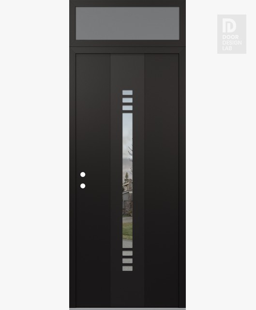 Modern Steel Front Door DIAMOND A5 36" X 96" BLACK/BLACK CLEAR GLASS PANEL BLACK LHI WITH TRANSOM FROSTED GLASS