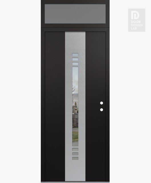 Modern Steel Front Door DIAMOND A5 36" X 96" BLACK/BLACK CLEAR GLASS PANEL STAINLESS STEEL RHI WITH TRANSOM FROSTED GLASS