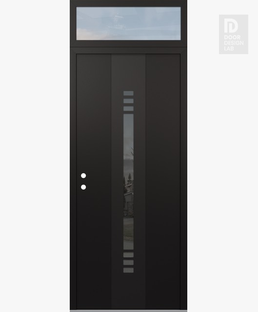 Modern Steel Front Door DIAMOND A5 36" X 96" BLACK/BLACK MIRRORED GLASS PANEL BLACK LHI WITH TRANSOM CLEAR GLASS