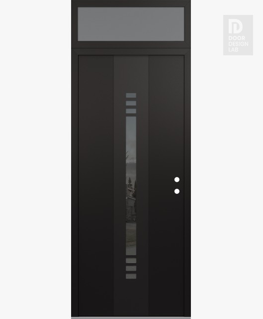 Modern Steel Front Door DIAMOND A5 36" X 96" BLACK/BLACK MIRRORED GLASS PANEL BLACK RHI WITH TRANSOM FROSTED GLASS
