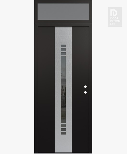 Modern Steel Front Door DIAMOND A5 36" X 96" BLACK/BLACK MIRRORED GLASS PANEL STAINLESS STEEL RHI WITH TRANSOM FROSTED GLASS
