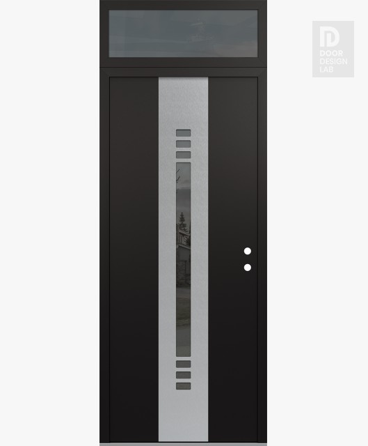 Modern Steel Front Door DIAMOND A5 36" X 96" BLACK/BLACK MIRRORED GLASS PANEL STAINLESS STEEL RHI WITH TRANSOM MIRRORED GLASS