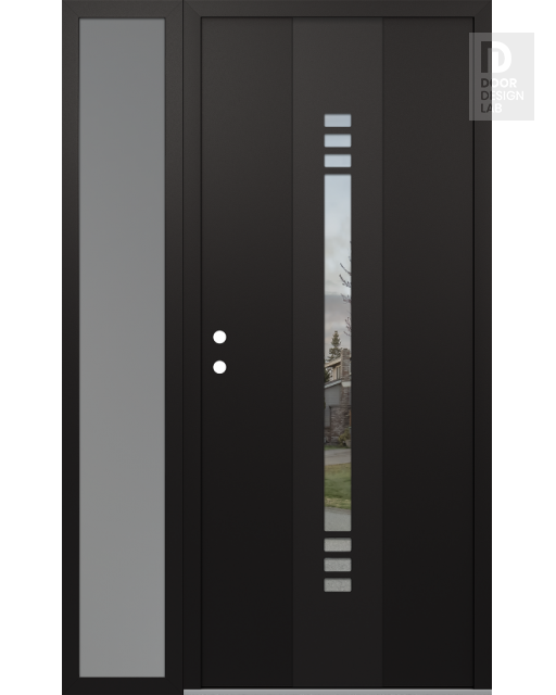 Modern Steel Front Door DIAMOND A5 48" X 80" BLACK/BLACK CLEAR GLASS PANEL BLACK LHI WITH SIDELITE FROSTED GLASS