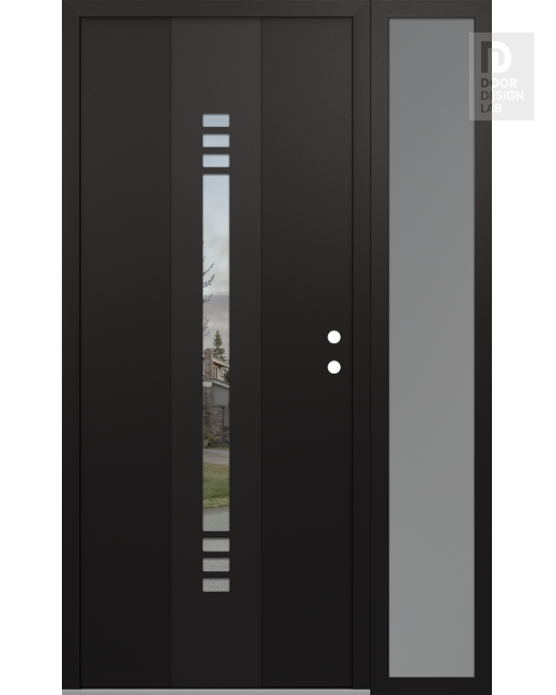 Modern Steel Front Door DIAMOND A5 48" X 80" BLACK/BLACK CLEAR GLASS PANEL BLACK RHI WITH SIDELITE FROSTED GLASS