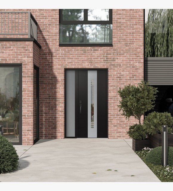 The double-chamber glazing combined with polystyrene insulation reduces heat loss by 40-50% compared to conventional exterior doors: