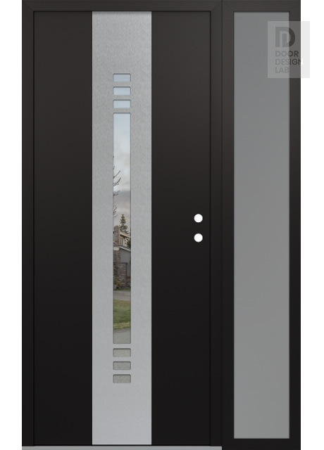 Modern Steel Front Door DIAMOND A5 48" X 80" BLACK/BLACK CLEAR GLASS PANEL STAINLESS STEEL RHI WITH SIDELITE FROSTED GLASS