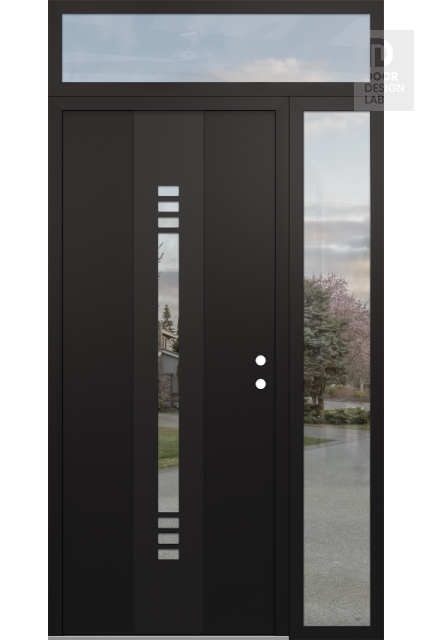 Modern Steel Front Door DIAMOND A5 48" X 96" BLACK/BLACK CLEAR GLASS PANEL BLACK RHI WITH SIDELITE AND TRANSOM CLEAR GLASS