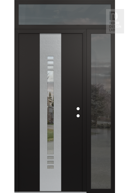 Modern Steel Front Door DIAMOND A5 48" X 96" BLACK/BLACK CLEAR GLASS PANEL STAINLESS STEEL RHI WITH SIDELITE AND TRANSOM MIRRORED GLASS