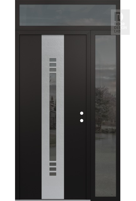 Modern Steel Front Door DIAMOND A5 48" X 96" BLACK/BLACK MIRRORED GLASS PANEL STAINLESS STEEL RHI WITH SIDELITE AND TRANSOM MIRRORED GLASS