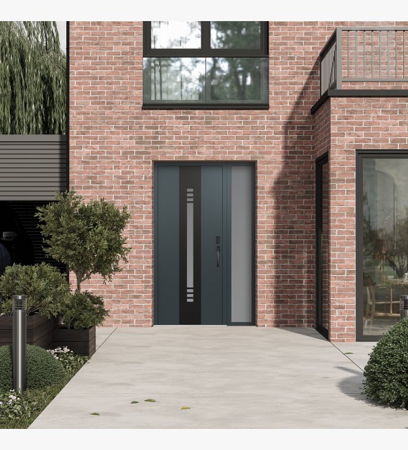 Modern Steel Front Door DIAMOND A5 50" X 80" ANTHRACITE/ANTHRACITE FROSTED GLASS PANEL BLACK LHI WITH SIDELITE FROSTED GLASS