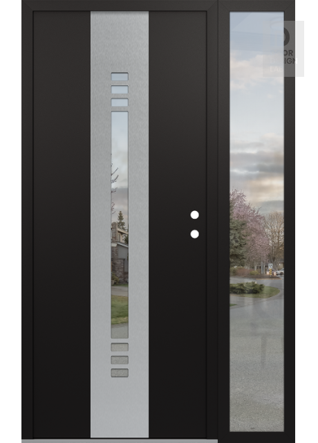 Modern Steel Front Door DIAMOND A5 50" X 80" BLACK/BLACK CLEAR GLASS PANEL STAINLESS STEEL RHI WITH SIDELITE CLEAR GLASS