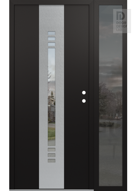 Modern Steel Front Door DIAMOND A5 50" X 80" BLACK/BLACK CLEAR GLASS PANEL STAINLESS STEEL RHI WITH SIDELITE MIRRORED GLASS