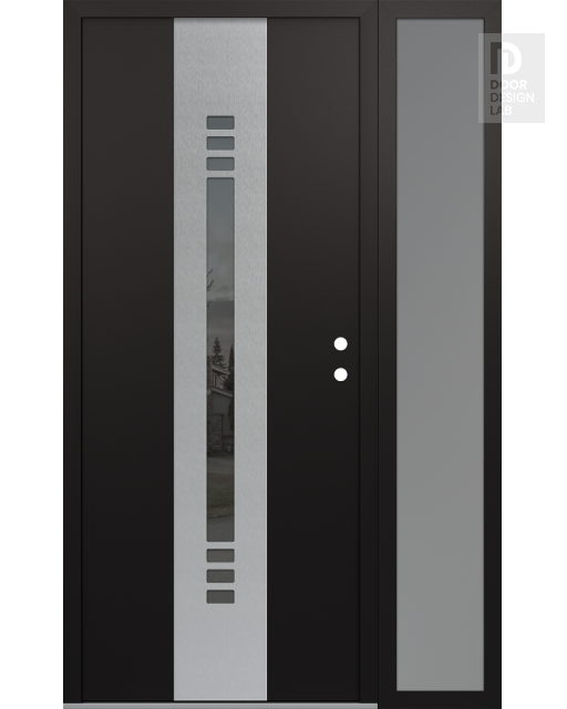 Modern Steel Front Door DIAMOND A5 50" X 80" BLACK/BLACK MIRRORED GLASS PANEL STAINLESS STEEL RHI WITH SIDELITE FROSTED GLASS