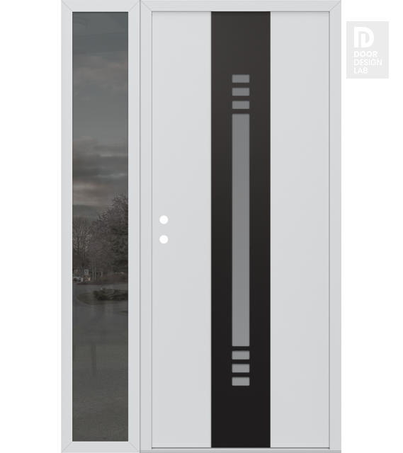 Modern Steel Front Door DIAMOND A5 50" X 80" BLACK/WHITE FROSTED GLASS PANEL BLACK LHI WITH SIDELITE MIRRORED GLASS