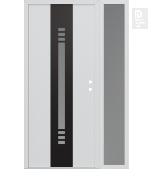 Modern Steel Front Door DIAMOND A5 50" X 80" BLACK/WHITE FROSTED GLASS PANEL BLACK RHI WITH SIDELITE FROSTED GLASS