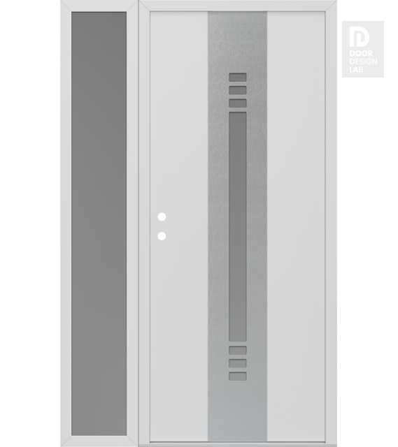 Modern Steel Front Door DIAMOND A5 50" X 80" BLACK/WHITE FROSTED GLASS PANEL STAINLESS STEEL LHI WITH SIDELITE FROSTED GLASS