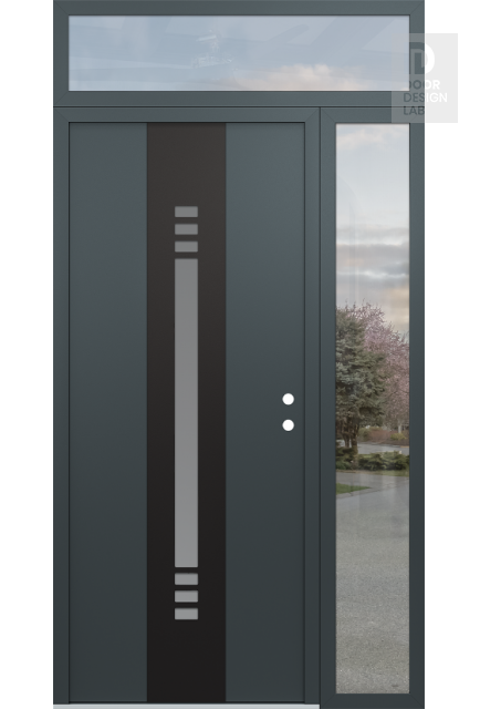 Modern Steel Front Door DIAMOND A5 50" X 96" ANTHRACITE/ANTHRACITE FROSTED GLASS PANEL BLACK RHI WITH SIDELITE AND TRANSOM CLEAR GLASS