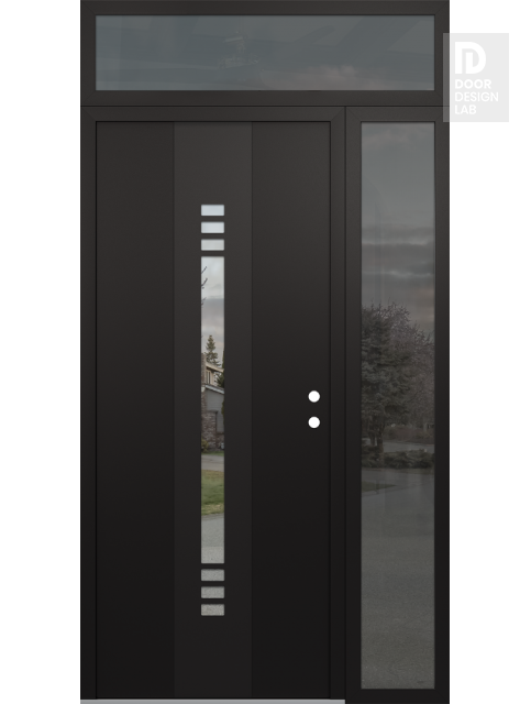 Modern Steel Front Door DIAMOND A5 50" X 96" BLACK/BLACK CLEAR GLASS PANEL BLACK RHI WITH SIDELITE AND TRANSOM MIRRORED GLASS