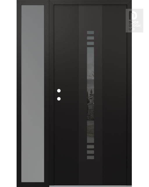 Modern Steel Front Door DIAMOND A5 52" X 80" BLACK/BLACK MIRRORED GLASS PANEL BLACK LHI WITH SIDELITE FROSTED GLASS