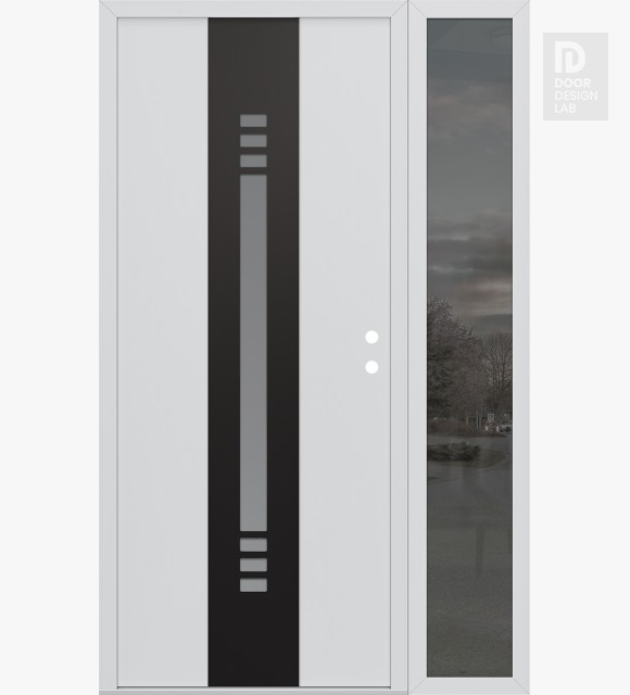 Modern Steel Front Door DIAMOND A5 52" X 80" BLACK/WHITE FROSTED GLASS PANEL BLACK RHI WITH SIDELITE MIRRORED GLASS