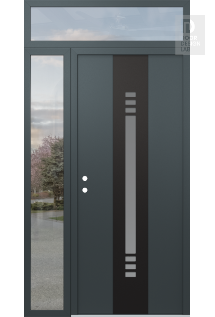 Modern Steel Front Door DIAMOND A5 52" X 96" ANTHRACITE/ANTHRACITE FROSTED GLASS PANEL BLACK LHI WITH SIDELITE AND TRANSOM CLEAR GLASS