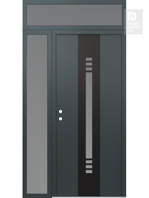 Modern Steel Front Door DIAMOND A5 52" X 96" ANTHRACITE/ANTHRACITE FROSTED GLASS PANEL BLACK LHI WITH SIDELITE AND TRANSOM FROSTED GLASS