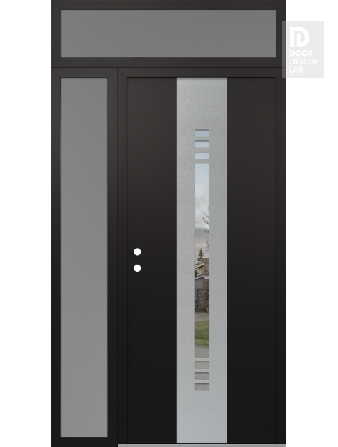 Modern Steel Front Door DIAMOND A5 52" X 96" BLACK/BLACK CLEAR GLASS PANEL STAINLESS STEEL LHI WITH SIDELITE AND TRANSOM FROSTED GLASS