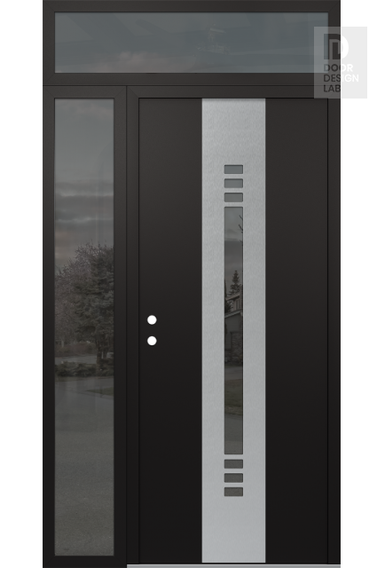 Modern Steel Front Door DIAMOND A5 52" X 96" BLACK/BLACK MIRRORED GLASS PANEL STAINLESS STEEL LHI WITH SIDELITE AND TRANSOM MIRRORED GLASS