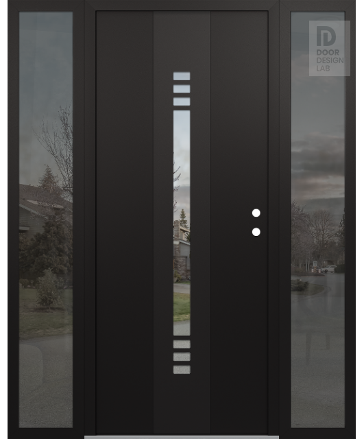 Modern Steel Front Door DIAMOND A5 60" X 80" BLACK/BLACK CLEAR GLASS PANEL BLACK RHI WITH 2 SIDELITES MIRRORED GLASS