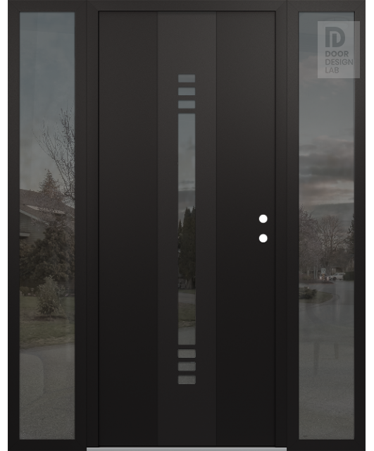 Modern Steel Front Door DIAMOND A5 60" X 80" BLACK/BLACK MIRRORED GLASS PANEL BLACK RHI WITH 2 SIDELITES MIRRORED GLASS
