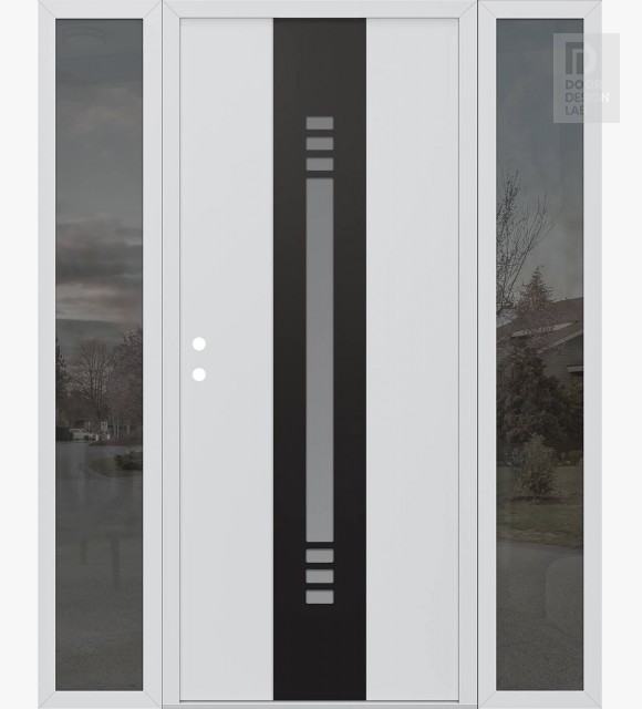 Modern Steel Front Door DIAMOND A5 60" X 80" BLACK/WHITE FROSTED GLASS PANEL BLACK LHI WITH 2 SIDELITES MIRRORED GLASS