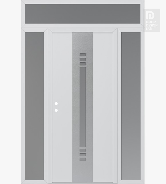 Modern Steel Front Door DIAMOND A5 60" X 96" BLACK/WHITE FROSTED GLASS PANEL STAINLESS STEEL LHI WITH 2 SIDELITES AND TRANSOM FROSTED GLASS