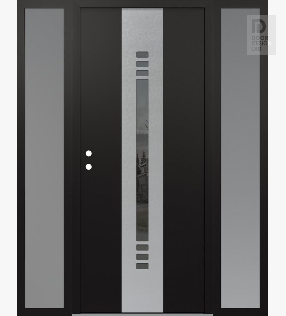 Modern Steel Front Door DIAMOND A5 64" X 80" BLACK/BLACK MIRRORED GLASS PANEL STAINLESS STEEL LHI WITH 2 SIDELITES FROSTED GLASS
