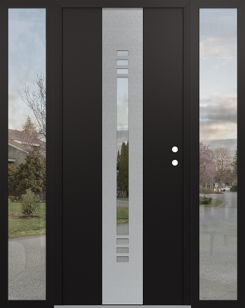 Modern Steel Front Door DIAMOND A5 68" X 80" BLACK/BLACK CLEAR GLASS PANEL STAINLESS STEEL RHI WITH 2 SIDELITES CLEAR GLASS