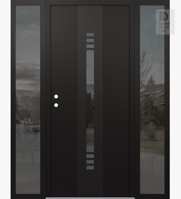 Modern Steel Front Door DIAMOND A5 68" X 80" BLACK/BLACK MIRRORED GLASS PANEL BLACK LHI WITH 2 SIDELITES MIRRORED GLASS