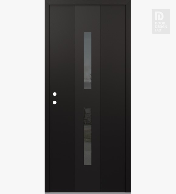 Modern Steel Front Door DIAMOND A6 36" X 80" BLACK/BLACK MIRRORED GLASS PANEL BLACK LHI