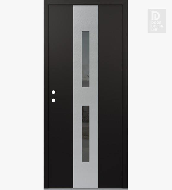 Modern Steel Front Door DIAMOND A6 36" X 80" BLACK/BLACK MIRRORED GLASS PANEL STAINLESS STEEL LHI