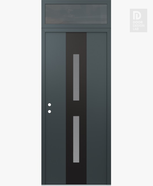 Modern Steel Front Door DIAMOND A6 36" X 96" ANTHRACITE/ANTHRACITE FROSTED GLASS PANEL BLACK LHI WITH TRANSOM MIRRORED GLASS